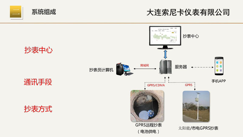 大連索尼卡儀表有限公司超聲波流量計智能遠程抄表管理系統(tǒng)可實現用水數據的抄、算、管、控一體化管理,為客戶提供高性能、智能化的計量信息采集、管理與服務。由人工抄表向自動抄表的轉變,可大幅提高水司現代化管理水平。不但能提供每月水量,而且可衍生出大量有用的用水信息,如:用戶每日、每月的用水曲線,用水高峰低谷等信息。這些信息為營業(yè)系統(tǒng)提供大量的準實時數據,并可對用戶用水負荷合理調度、對每條管線負荷的合理安排、供水管網和設備的合理規(guī)劃與改造等提供可靠的科學決策依據。